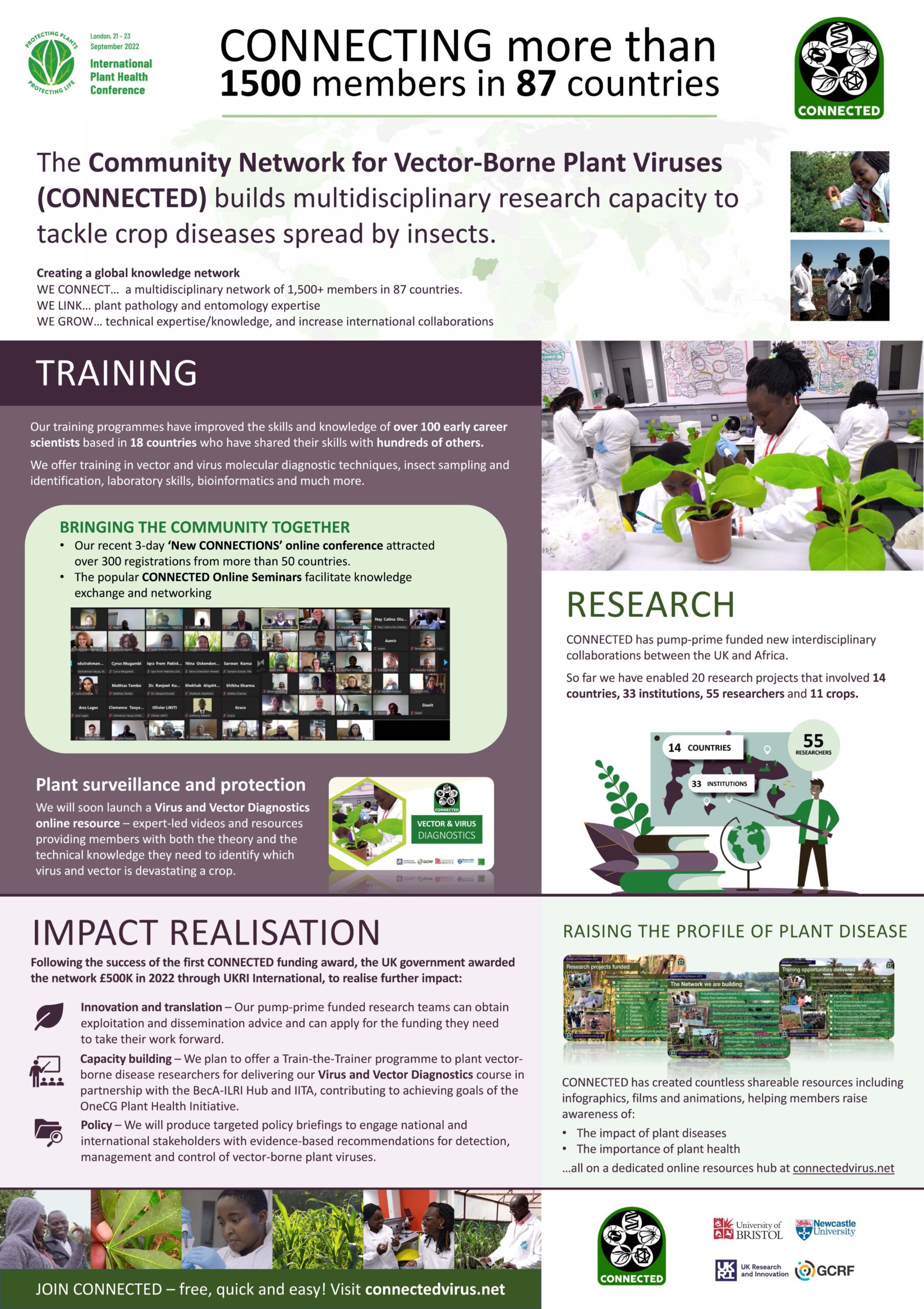 The conference was themed around food security, environmental protection and trade, with the aim of boosting collective efforts on plant protection. Plant diseases cost the global economy $220bn per year. Many CONNECTED network members are already aware that cassava disease alone costs $1bn per year.